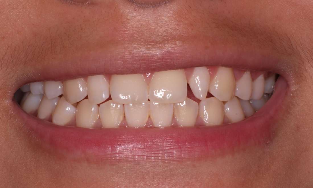 This patient's lateral incisors appeared small and misshapen, resembling a peg. The tooth's shape was visibly different from the adjacent teeth, creating a noticeable asymmetry in the smile.
